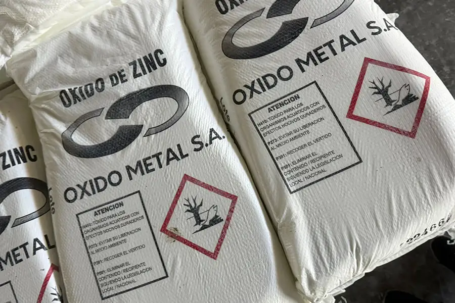 Oxido de Zinc con 72 o 78 % de Zinc y muy bajo contenido de metales pesados de amplio uso en premezclas para alimentación animal.
